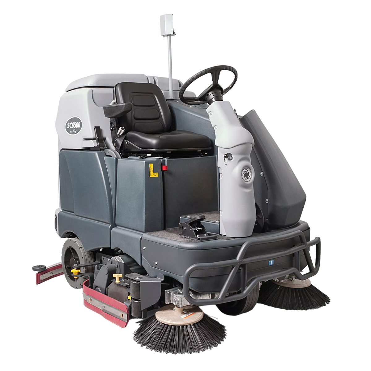 Restregadora Hombre a bordo. 36 pulgadas de restregado. Tanques de 147L cada uno. Incluye dos cepillos de 36 pulgadas cada uno. Incluye 6 baterías de 420Ah y cargador de 36V. Sistema de activación automático. Smart Flow, llaves inteligentes y panel con scannner de servicio OLED incluido.